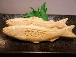 揖保川の鮎の姿そのままに、甘さ控えめのこし餡を包みました。